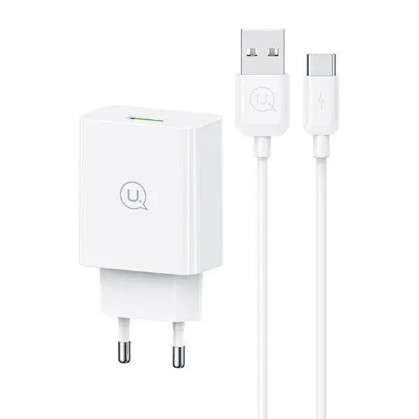 Bộ củ sạc kèm cáp Lightning USAMS Fast Charger Kit 18W - SC Series (CC083 Single USB 18W QC3.0 Charger (EU)+SJ097 Lightning 2.1A 1M Cable ) White ( SCXLTZ03 )