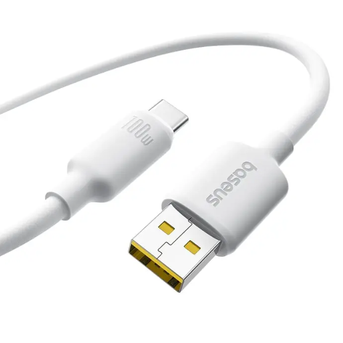 Baseus Foamed Silicone Fast Charging Data Cable USB-A to USB-C 100W 1m - WHITE