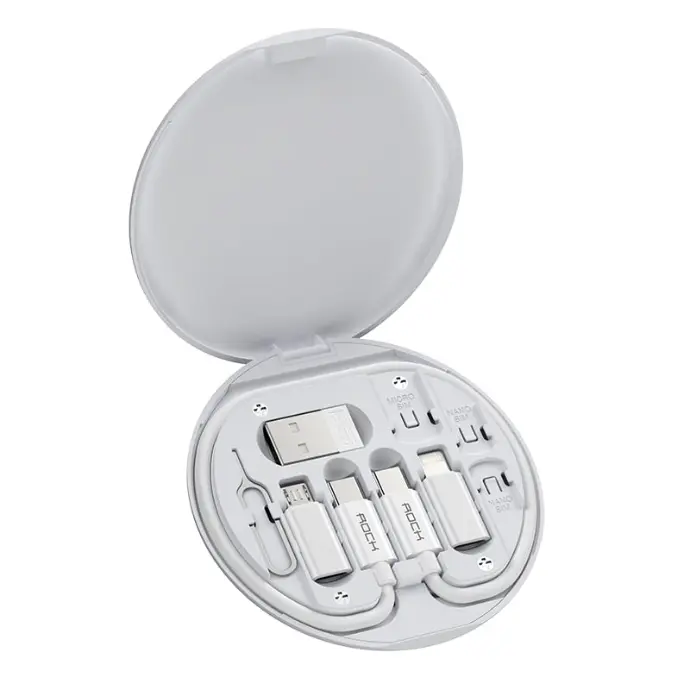 Bộ cáp sạc đa năng Rock Space (lightning, type C, USB, card pin, giá đỡ điện thoại, PD 60W)