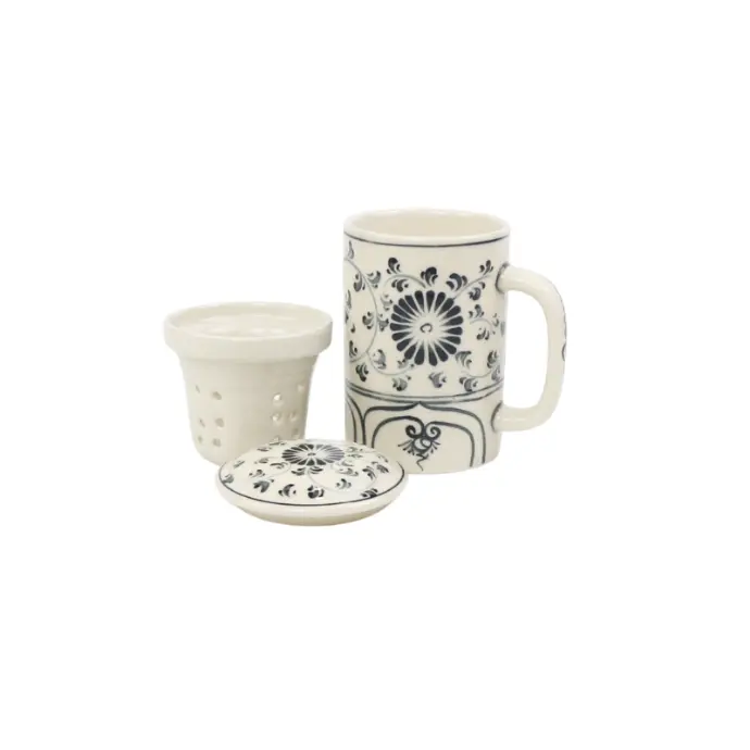 Ly sứ Bát Tràng cao cấp có lọc trà có nắp và lõi lọc trà, dung tích 300ml, kích thước 13x8cm
