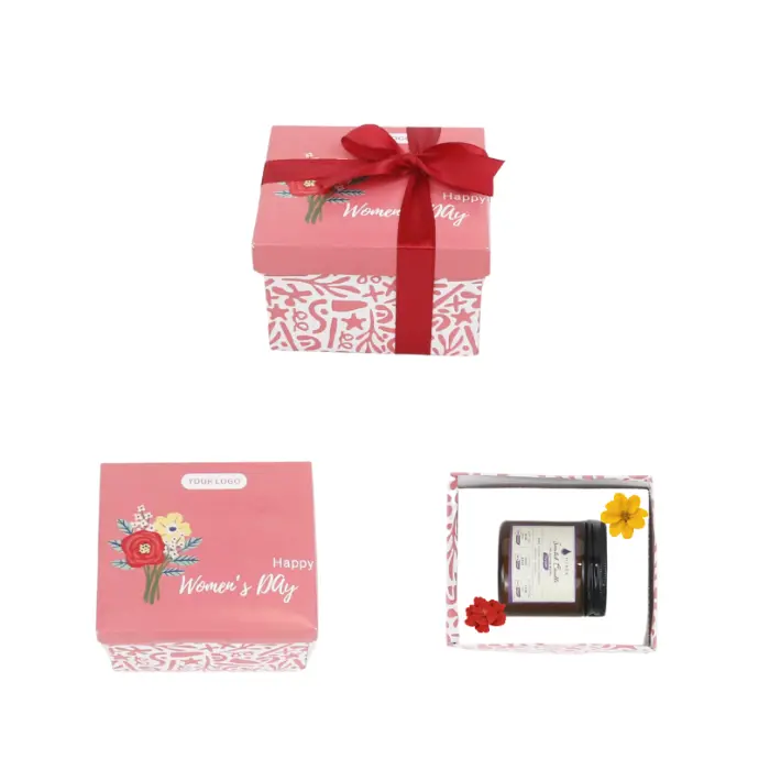 Bộ quà tặng nến thơm (100g) hộp tre vuông buộc nơ