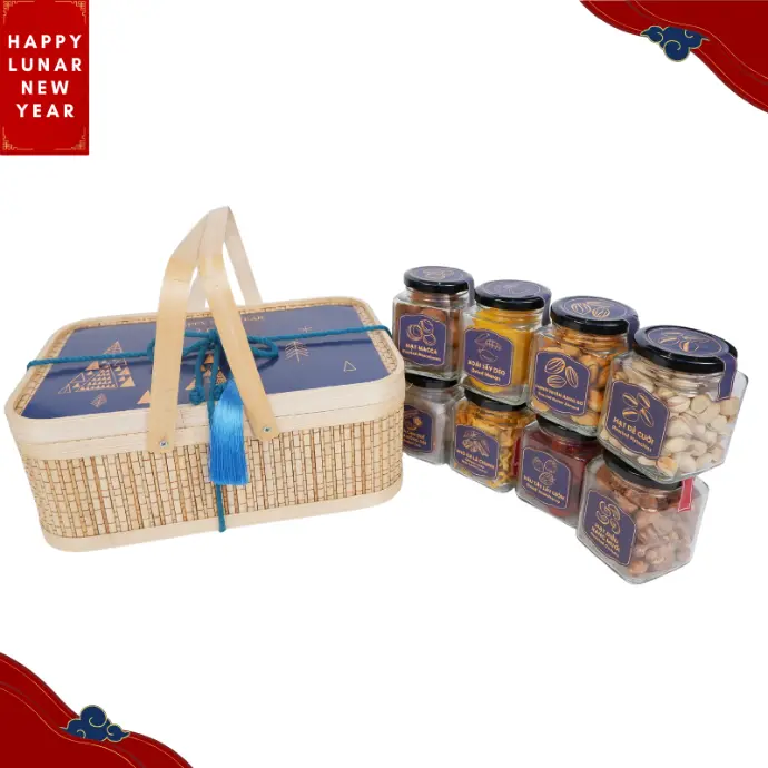 Giỏ quà Tết Blue Happy New Year - Hộp quà tết doanh nghiệp 2024