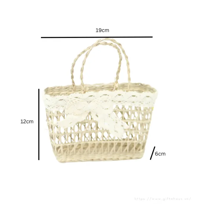 Túi xách cói nhỏ mắt cáo
