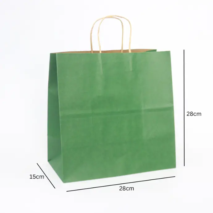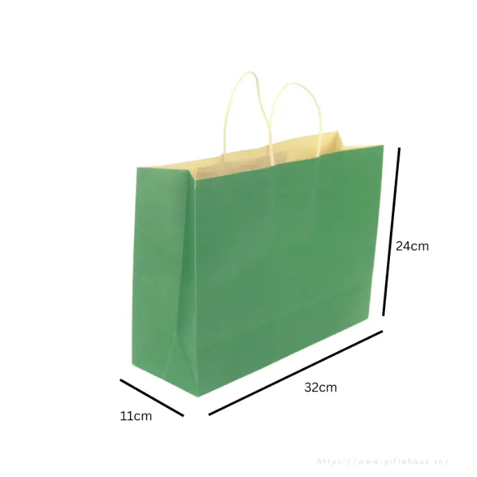 Túi xách giấy kraft xanh lá cây đậm, quai giấy nâu