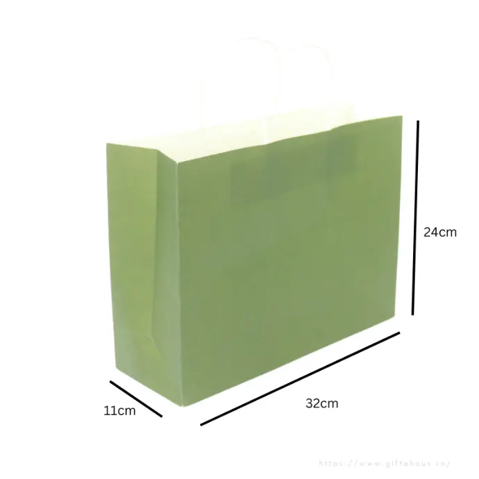 Túi xách giấy kraft xanh cốm, quai giấy trắng