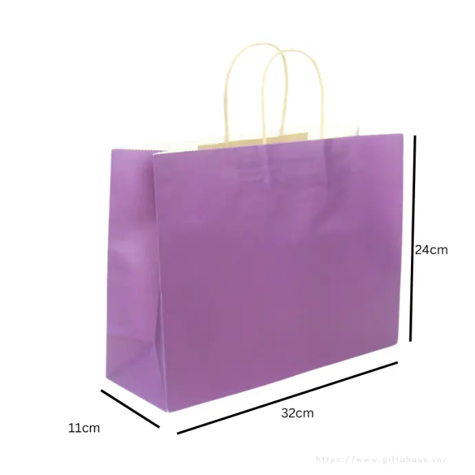 Túi xách giấy kraft tím, quai giấy nâu