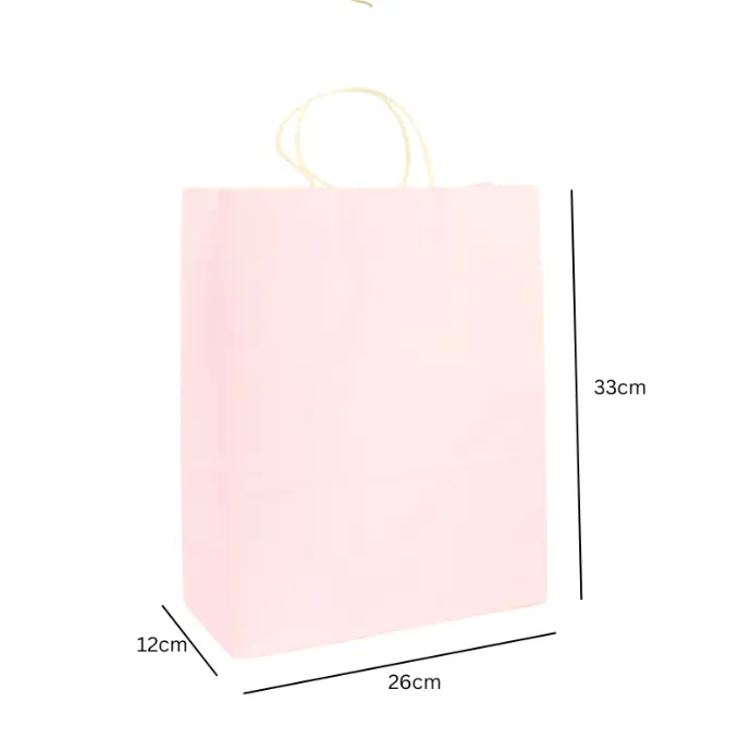 Túi xách giấy kraft hồng phấn, quai giấy trắng