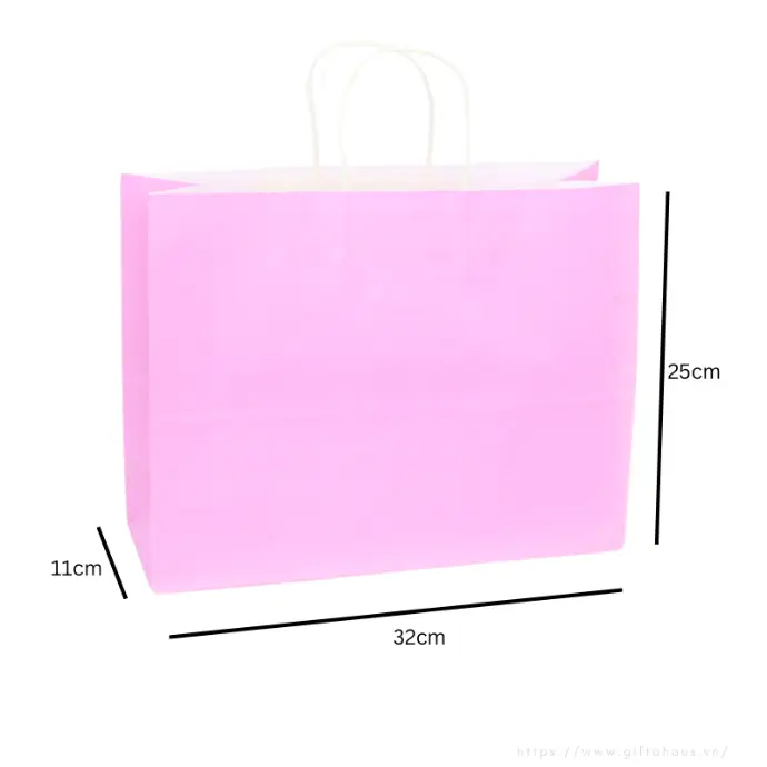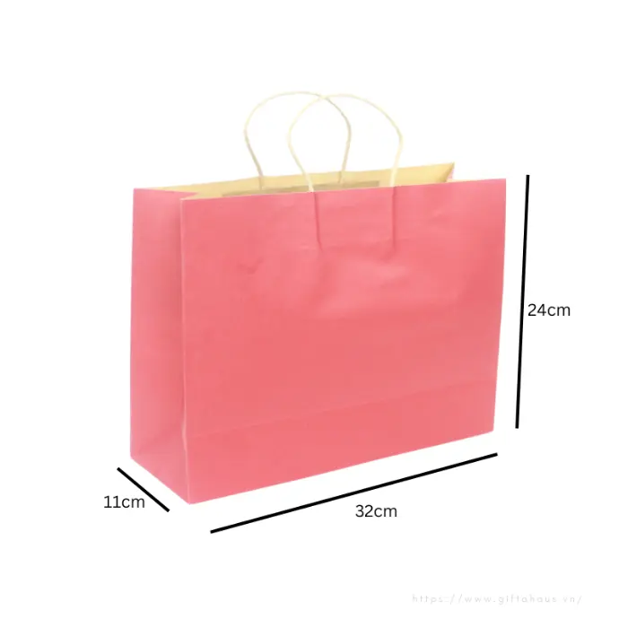 Túi xách giấy kraft hồng, quai trắng, form đứng