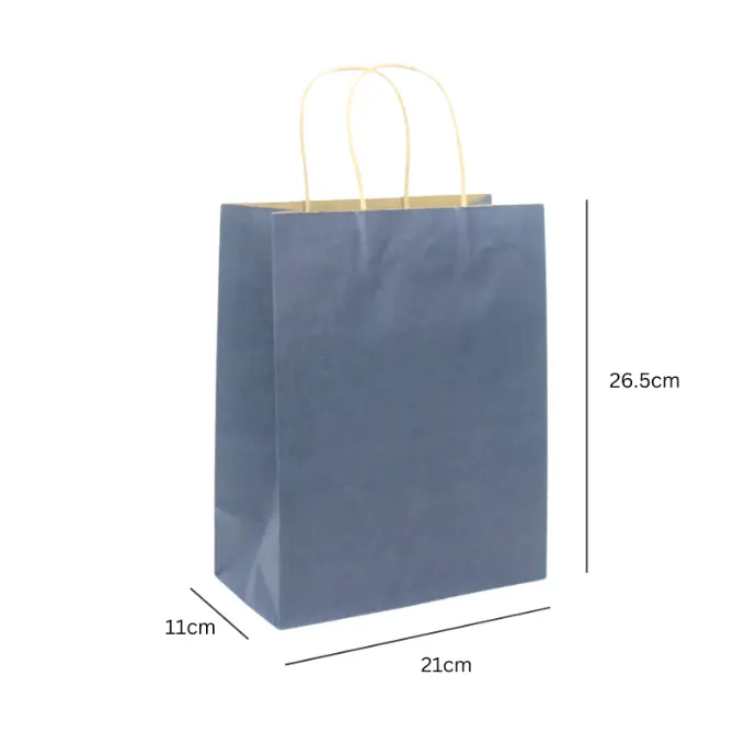 Túi xách giấy kraft xanh navy, quai nâu, form đứng