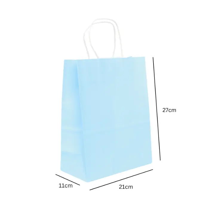 Túi xách giấy xanh dương nhạt, quai trắng, form đứng